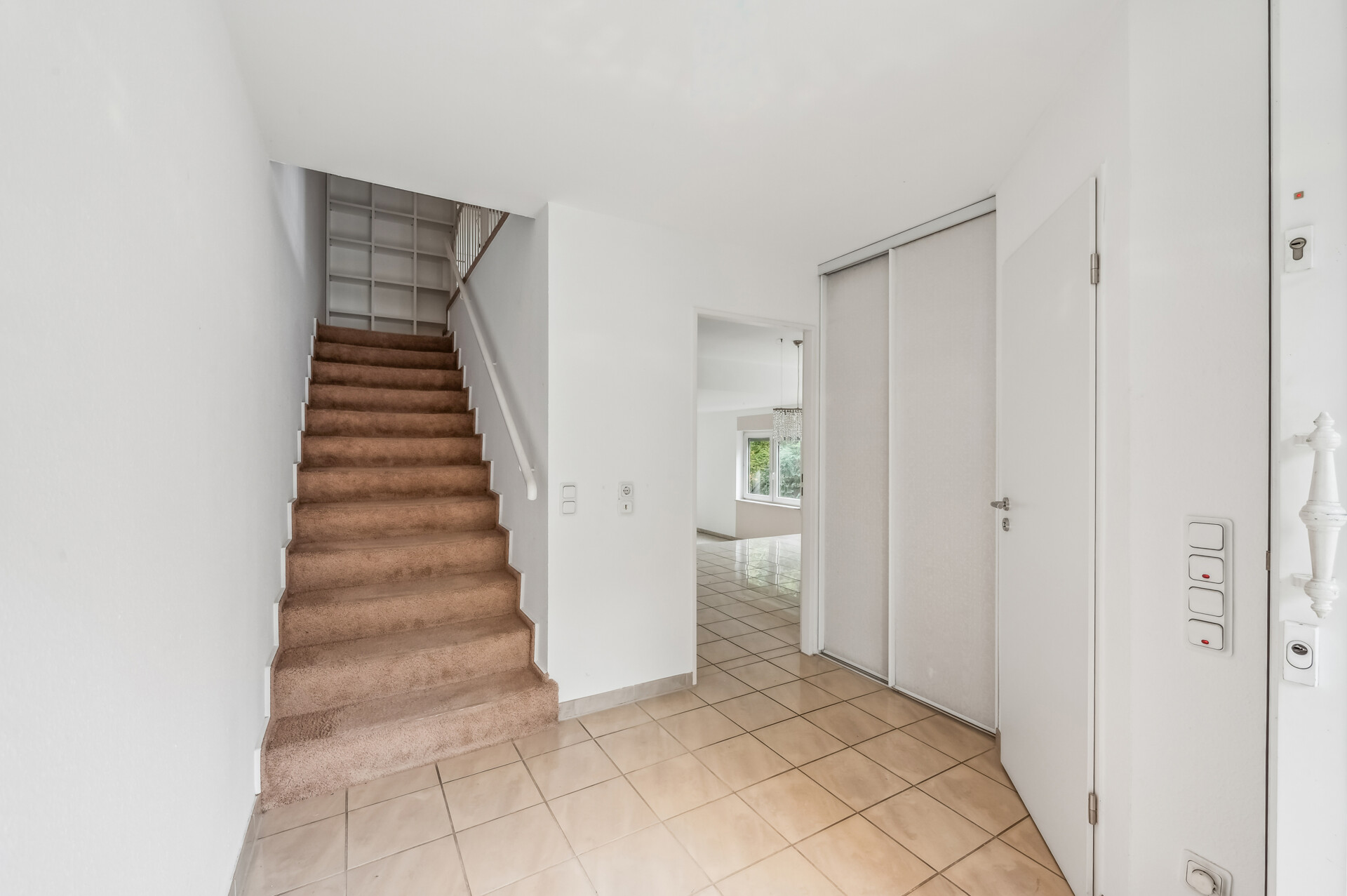 Helle Fliesen runden das Gesamtbild im Erdgeschoss ab.