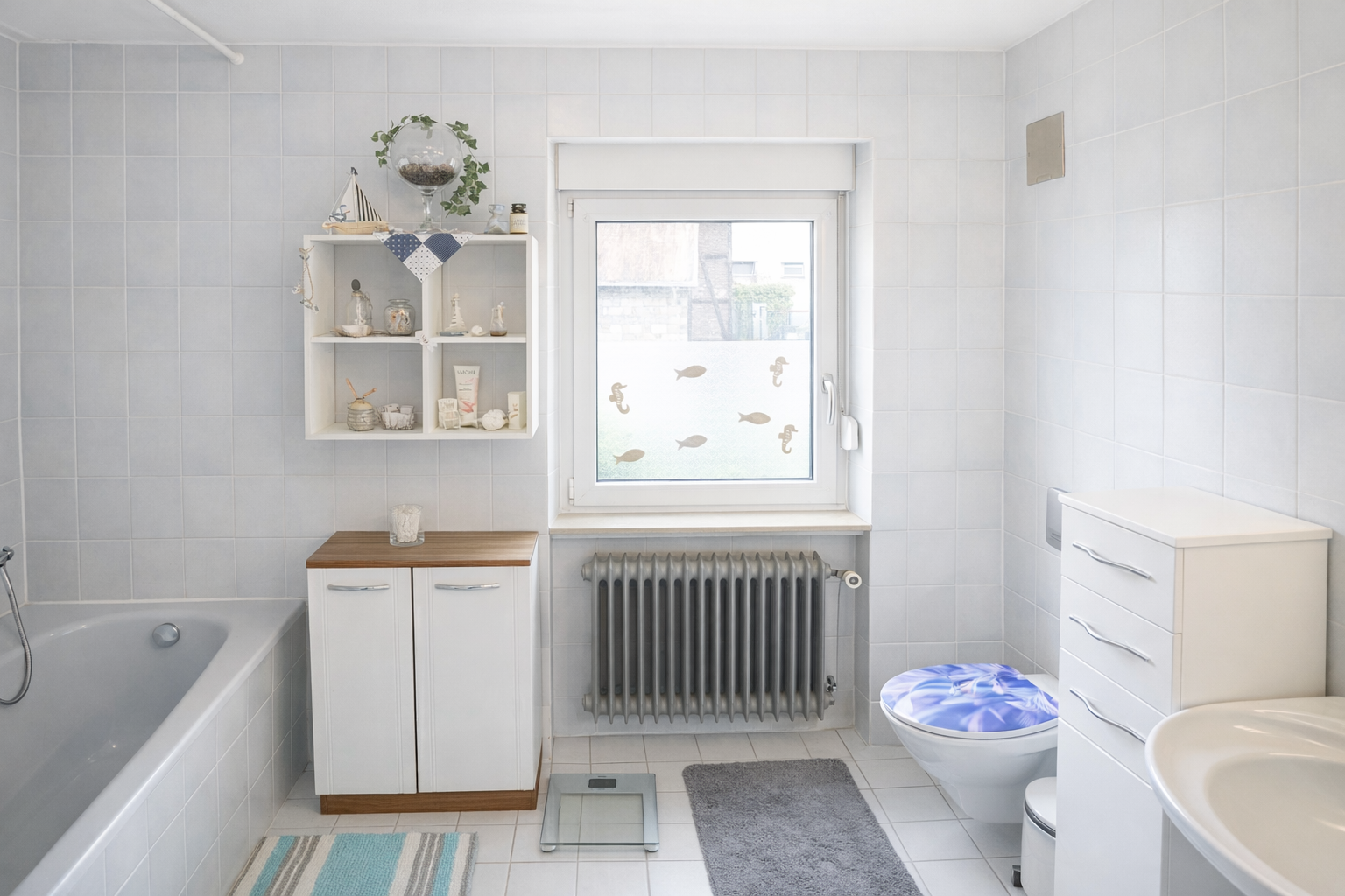 Badezimmer: Wohnung 1: Tageslichtbad mit Badewanne/ Wohnung 2: Tageslichtbad mit Dusche/ Weiteres Tageslichtbad über Hausflur zugänglich mit Badewanne und Anschlussmöglichkeit für Waschmaschine
