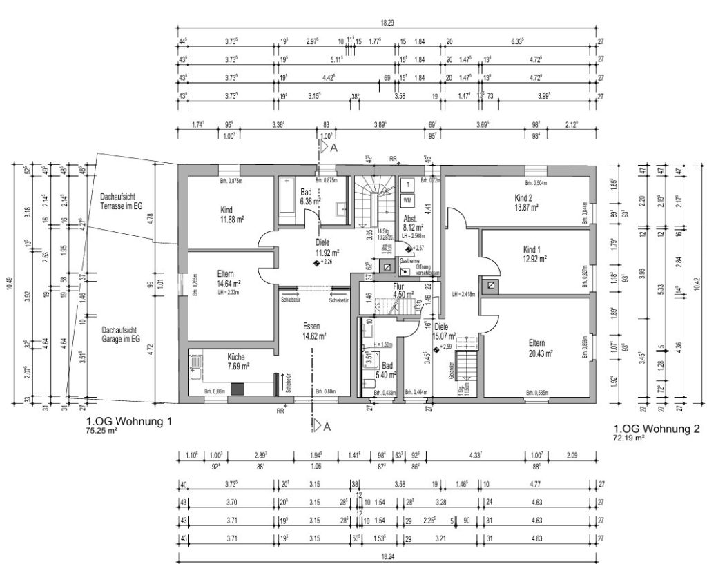 Die zweite Wohnung umfasst ca. 147 m² Wohnfläche und erstreckt sich auf der rechten Hausseite etwa hälftig über das Erd-/ und das Obergeschoss.