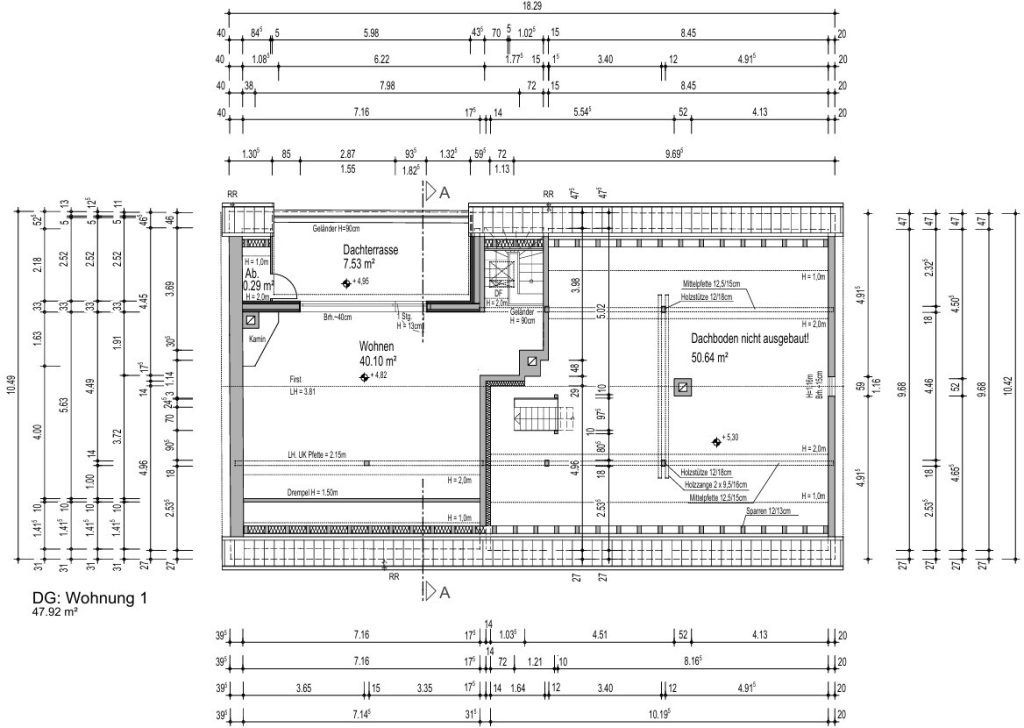 Die erste Wohneinheit verfügt über ca. 129 m² Wohnfläche, verteilt auf vier Zimmer. Der Zugang liegt im Erdgeschoss, während sich der überwiegende Teil der Wohnräume über das Ober-/ und Dachgeschoss erstreckt.